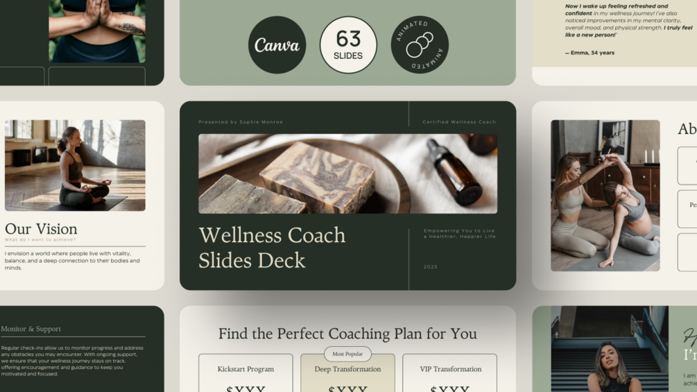 Wellness Coach Slide Deck Canva Template – 63 Animated Slides